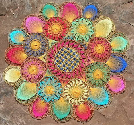 Una vez realizados los pequeños motivos se juntan varios de ellos para hacer polleras o que se aplican en blusas, manteles y otras prendas de vestir y para el hogar. Objetos textiles que se expondrán en una vidriera céntrica de la ciudad, durante la semana indicada.